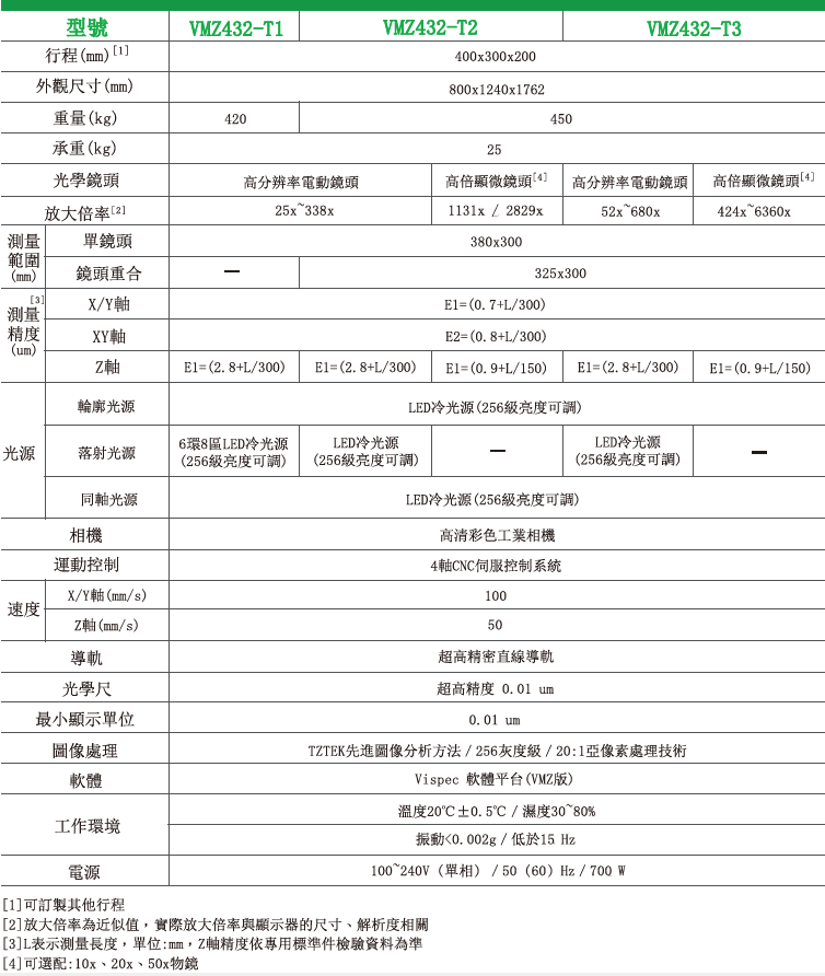 產品總覽 → TZTEK 影像測量 →VMZ超高精度機型