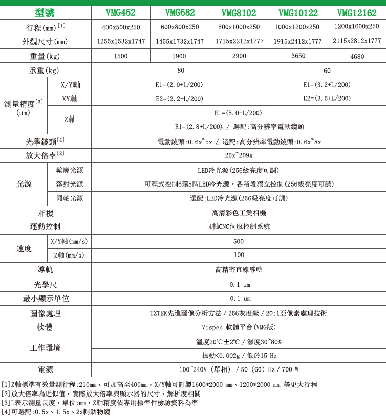 產品總覽 → TZTEK 影像測量 →VMG龍門型機型