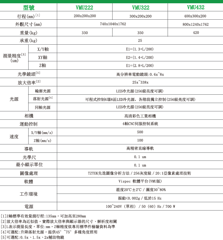 產品總覽 → TZTEK 影像測量 →VMU高端型機型
